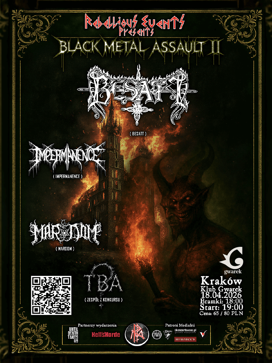 🟢 𝗕𝗹𝗮𝗰𝗸 𝗠𝗲𝘁𝗮𝗹 𝗔𝘀𝘀𝗮𝘂𝗹𝘁 𝗜𝗜 to druga część cyklu Rebellious Events, który połączy krakowskich fanów prawdziwego undergroundu polskiego Black Metalu!