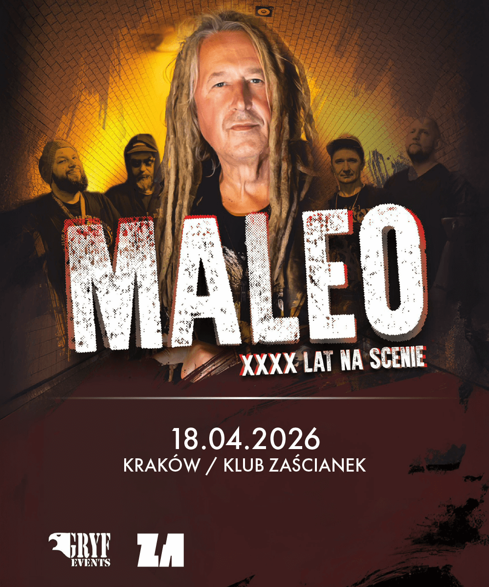 Bilety do kupienia na stronie: https://www.klubzascianek.pl/koncert/RYkQOB/2026-04-18/Maleo-XXXX-lat-na-scenie