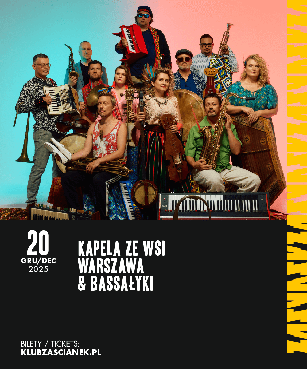 🎟️ Bilety: https://www.klubzascianek.pl/koncert/erkxQB/2025-12-20/Kapela-ze-Wsi-Warszawa-Bassałyki