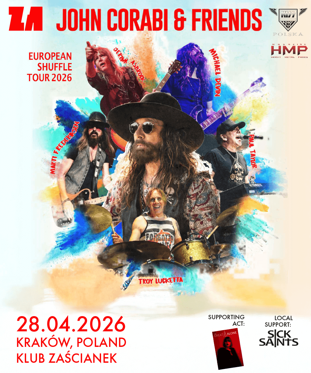 Bilety do kupienia na stronie: https://www.klubzascianek.pl/koncert/Xl5x6R/2026-04-28/John-Corabi-Motley-Crue-The-Dead-Daises-Friends