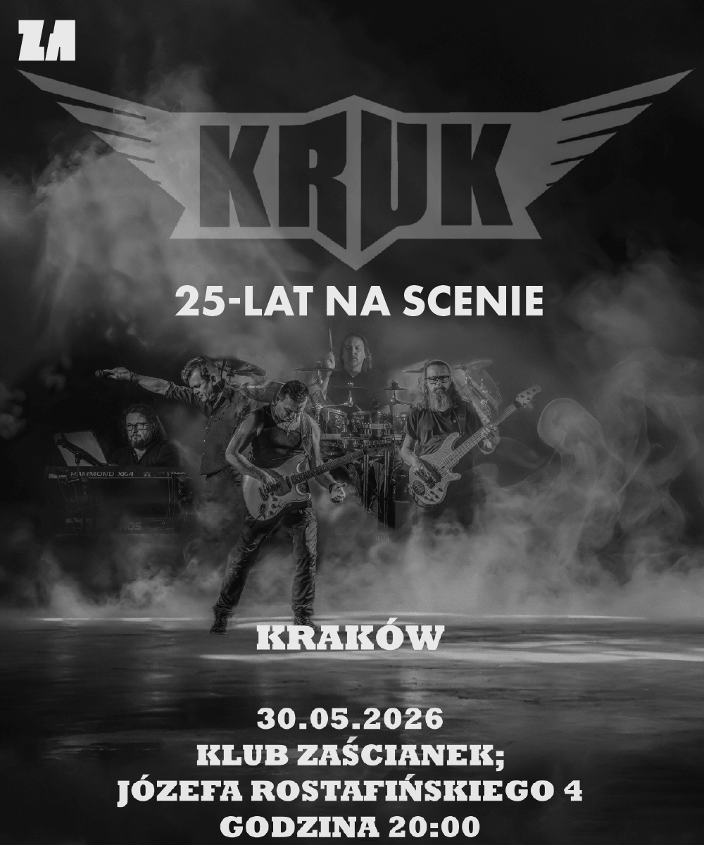 Bilety: https://www.klubzascianek.pl/koncert/BdLyZB/2026-05-30/KRUK-25-lat-na-scenie