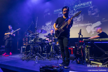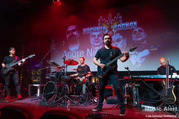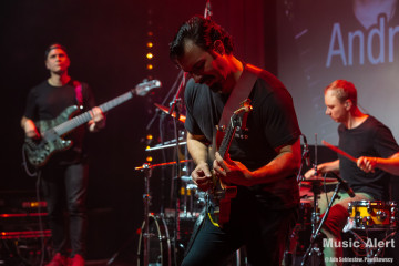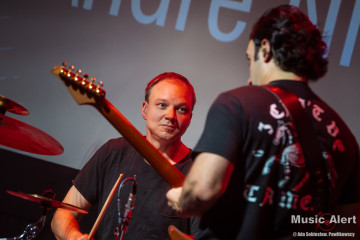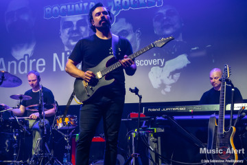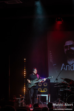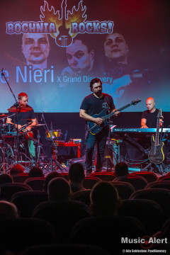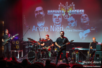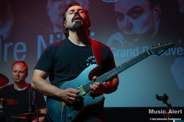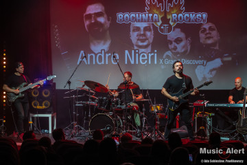 To już trzecia wizyta Brazylijczyka w Bochni. Poprzednio grał między innymi w zespole legendarnego bębniarza Virgila Donati. Tym razem mistrz przyjechał do Polski w towarzystwie fińskiego trio Grand Discovery. Zespół tworzą bracia Rauhala: perkusista Tuomas i pianista Panu, a skład uzupełnia grający na basie Ari-Pekka Kauppinen. To oznaczało, że tego wieczory na scenie będzie mniej rockowo niż zwykle, za to odbędzie się uczta dla miłośników gitarowej wirtuozerii oraz miłośników grania jazzrockowego. I tak się stało. Choć tego wieczoru w bocheńskim kinie stawiła się ciut mniejsza niż zazwyczaj reprezentacja fanów gitarowej jazdy, być może początek września i środek tygodnia to nie najszczęśliwszy termin na koncert, ale ci co przyszli, a zwłaszcza przyjechali na pewno nie żałują. Kawalkady dźwięków spod palców Andre imponowały nie tylko samą techniką, ale i muzykalnością artysty, a panowie z Helsinek dzielnie i skutecznie mu sekundowali zachowując spokojne, dostojne uśmiechy na twarzach. Oczywiście nie brakło solówek każdego z instrumentów, to w takiej muzyce normalne, i każdy z muzyków udowodnił, że nie znalazł się na scenie przypadkowo. Nasze patriotyczne dusze dodatkowo mile łechtał fakt, że panowie są użytkownikami polskich gitar Mayoness i zarówno Nieri użył instrumentu z tej manufaktury, a Ari-Pekka cały koncert wykonał na naszym produkcie eksportowym, brzmiąc zresztą wyśmienicie.