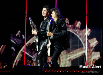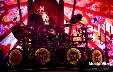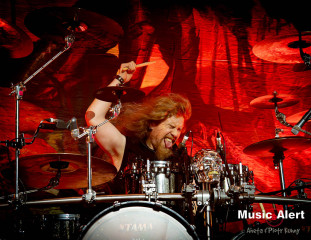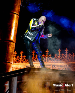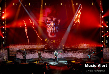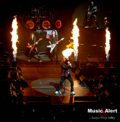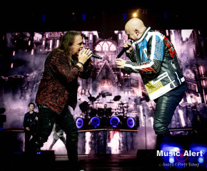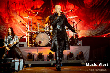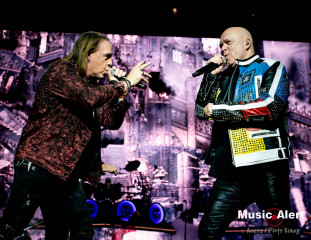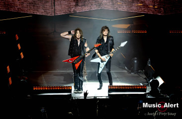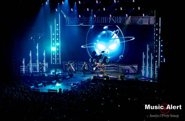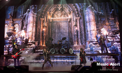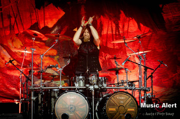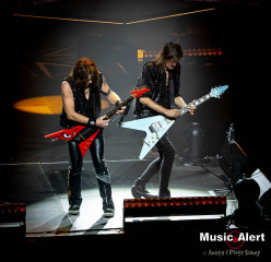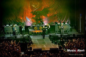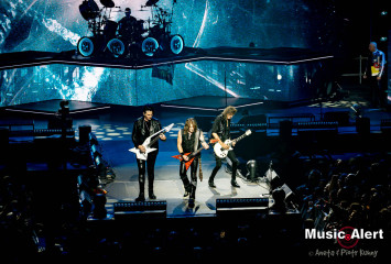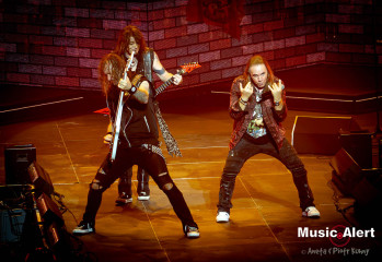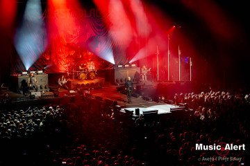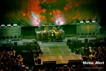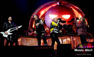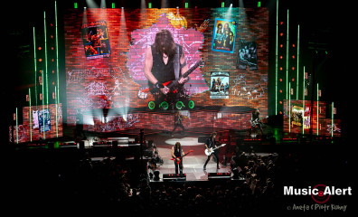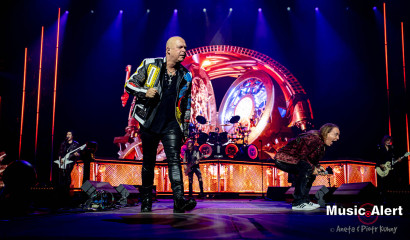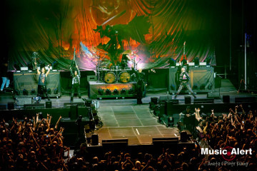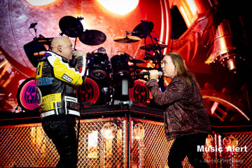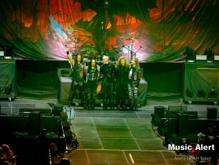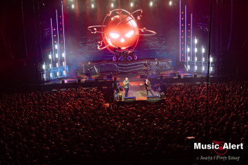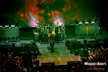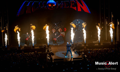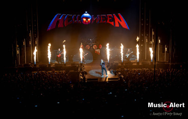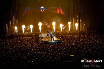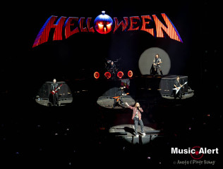 Gdy "Bestie" zeszły ze sceny zasłonięta została kotarą z olbrzymią dynią (oczywiście w kolorze zbliżonym do pomarańczowego), za którą uwijał się tłum techników by przygotować występ gwiazdy wieczoru. Po około 30 minutach i z głośników popłynęło intro (wersja coverowa „Let Me Entertain You” Robbie Williamsa), która przeszło w „March of Time” i pojawili się ONI- Helloween! Jako iż nazwa trasy "Pumpkins United" zobowiązuje, to na scenie zameldował się "zjednoczony", siedmioosobowy skład z trzema wokalistami: Michaelem Kiske, Andim Derisem i Kai Hansenem (ten w podwójnej roli, bo dzierżył również "wiosło") oraz trzema gitarzystami: wspomnianym Hansenem, Michaelem Weikathem i Saschą Gerstnerem, wspieranych przez Markusa Grosskopfa na basie i perkusistę Daniela Löble. Koncert Helloween był przeglądem największych hitów z całej ich bogatej kariery, od "Walls of Jericho" po najnowsze dokonania. Obecność trzech wokalistów pozwalała na naturalne przechodzenie między utworami śpiewanymi oryginalnie przez różnych frontmenów. Nie zabrakło "smaczków" takich jak popis perkusisty Daniela Löble, który zaprezentował widowiskowe solo, czy fragmentu akustycznego gdzie Kiske i Deris zamienili się miejscami i funkcją- raz jeden, następnie drugi wziął na siebie "obsługę gitary akustycznej" przy wykonaniu „Pink Bubbles Go Ape” oraz „In the Middle of a Heartbeat”. Do tego fenomenalna scenografia, efekty świetlne oraz ekrany multimedialne dodawały widowisku epickiego charakteru, tworząc wizualną oprawę godną jubileuszu. Oczywiście były wspólne śpiewy z publiką i takie hymny jak „Eagle Fly Free” i „Halloween”... Po prostu "Heavy Metal (Is the Law)"! Jedynego czego według mnie zabrakło to pełnego "Keeper of the Seven Keys". No ale nie można mieć wszystkiego.