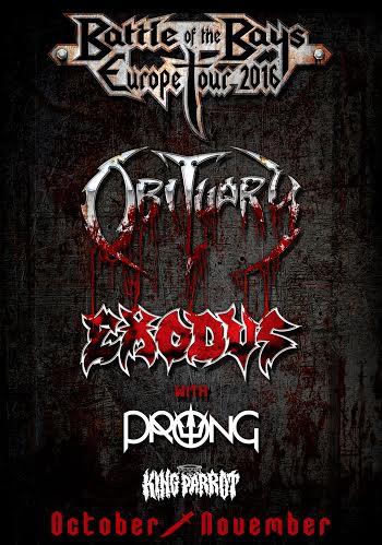 Obituary, pionierzy death metalu powracajÄ w listopadzie do Polski w ramach europejskiej trasy âBattle Of The Bays. Europe Tour 2016â! I to w znakomitym towarzystwie. Podczas dwĂłch koncertĂłw, w Warszawie (Progresja, 11.11) oraz w Katowicach (Mega Club, 12.11), zagrajÄ razem z Exodus, Prong oraz King Parrot!