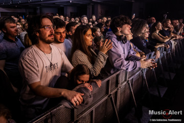 Na początek poszły dwa numery z legendarnej już, pierwszej płyty zespołu – „Zocha” i „Kosmos”, po czym wybrzmiało „Znikło miasto, nie ma ludzi” z drugiego krążka. Od czwartej piosenki panowie przeszli płynnie do prezentowania nowości – nie zabrakło „Kowbojskiego”, „Oceanu”, „W głębi” czy „Hell of a summer”. Po porcji najświeższych nagrań powrót do przeszłości – gromadnie odśpiewane „Doskonale”, „Nie ma nas” i „Trzy metry ponad ziemią”. Wszystko – jak to u Poluzjantów – było zagrane perfekcyjnie, brzmiało świetnie, a dość kameralny klub, jakim jest Kwadrat zapewniał brak sztucznej bariery między sceną a publicznością. No i jak to w przypadku Kuby nie zabrakło anegdotek i sporej ilości gadania pomiędzy piosenkami, łącznie z pięknym „standupem”, podczas którego Kuba zacytował sztuczną inteligencję udowadniającą, że założycielem i twórcą zespołu jest Piasek, a Badach nie ma z tym nic wspólnego.