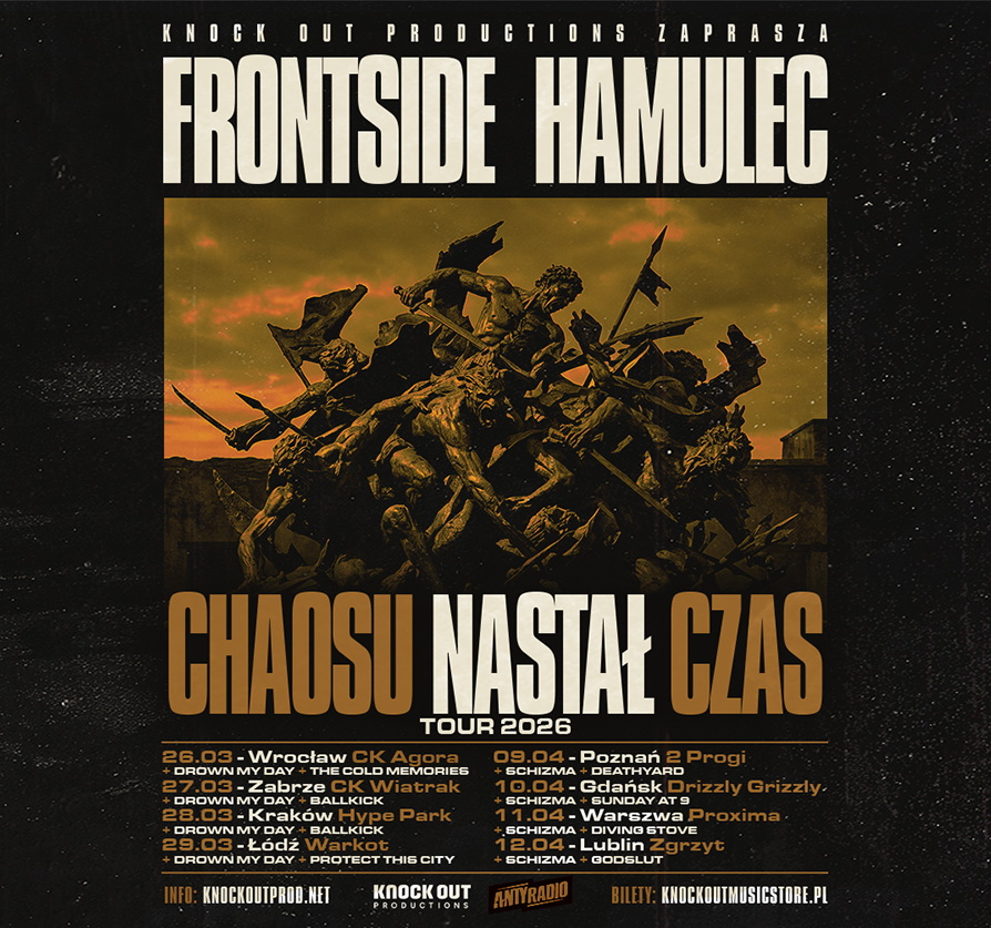 Zawsze na przekór ortodoksom i scenowym regułom. Frontside to pionierzy metalcore’a na polskim gruncie, którzy wielokrotnie zmieniali styl, patrząc wyłącznie przed siebie. Te koncerty będą zabójcze, a nowe numery z pewnością wypadną jak to u nich – żarliwie.