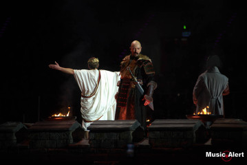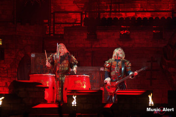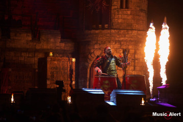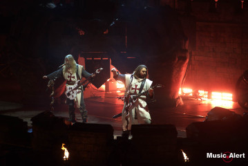 Sabaton w Krakowie nie oszczędził na produkcji - pirotechnika, eksplozje, metalowy most pomiędzy sceną główną a częścią, gdzie odbywały się narracje oraz sam początek spektaklu. Bo właśnie niekoniecznie można to nazwać tylko koncertem, a właśnie spektaklem - z aktorami wydzielającymi się w rolę Napoleona, Czyngis-chana, Cezara oraz Templariuszy - którzy okazali się członkami zespołu.